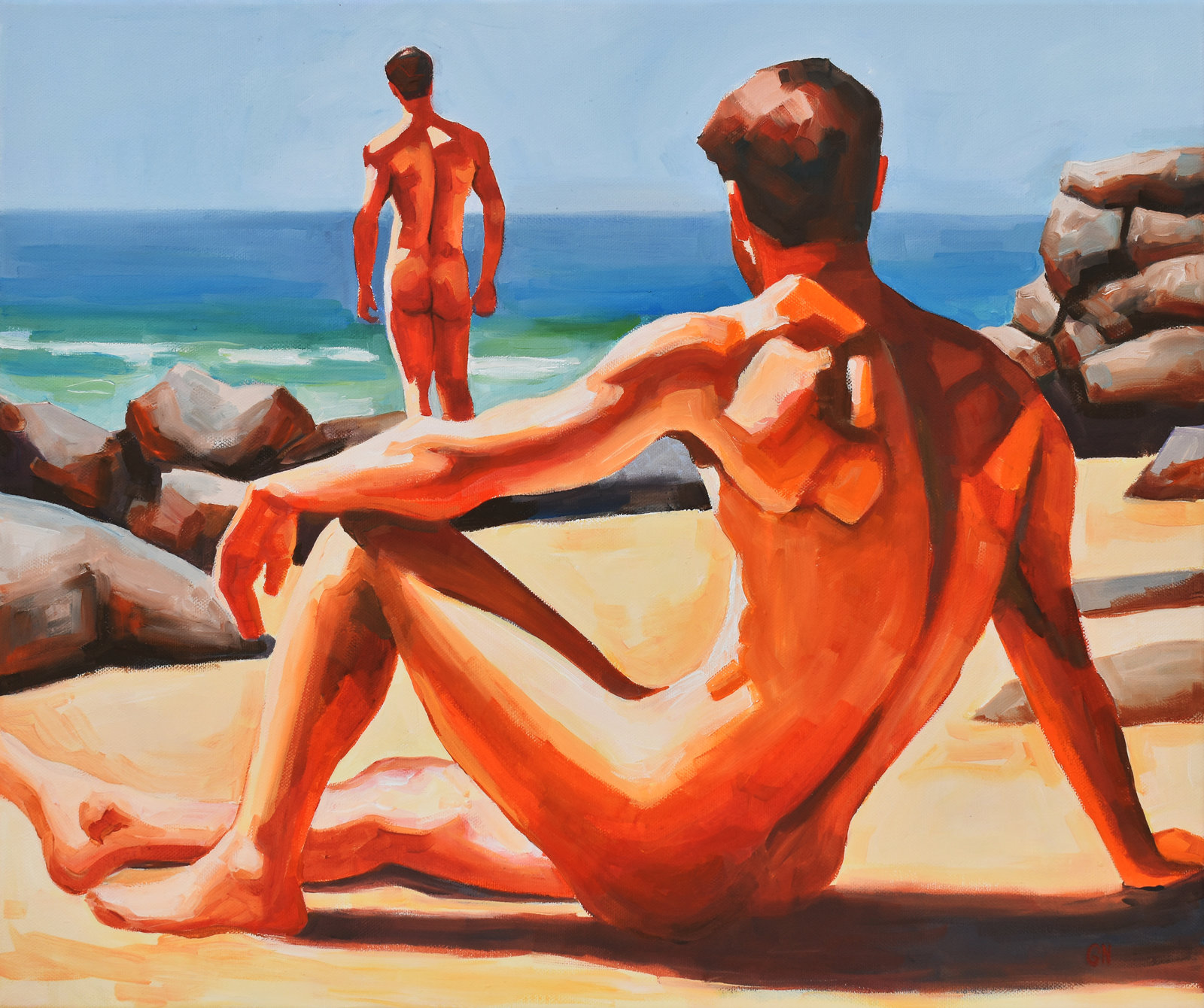 September 15, 2025 This painting, oil on canvas, 46 × 51 cm, shows a quiet summer moment by the sea. For me, it’s a reminder of how nature and the human body reflect one another — strong, open, and endlessly alive.